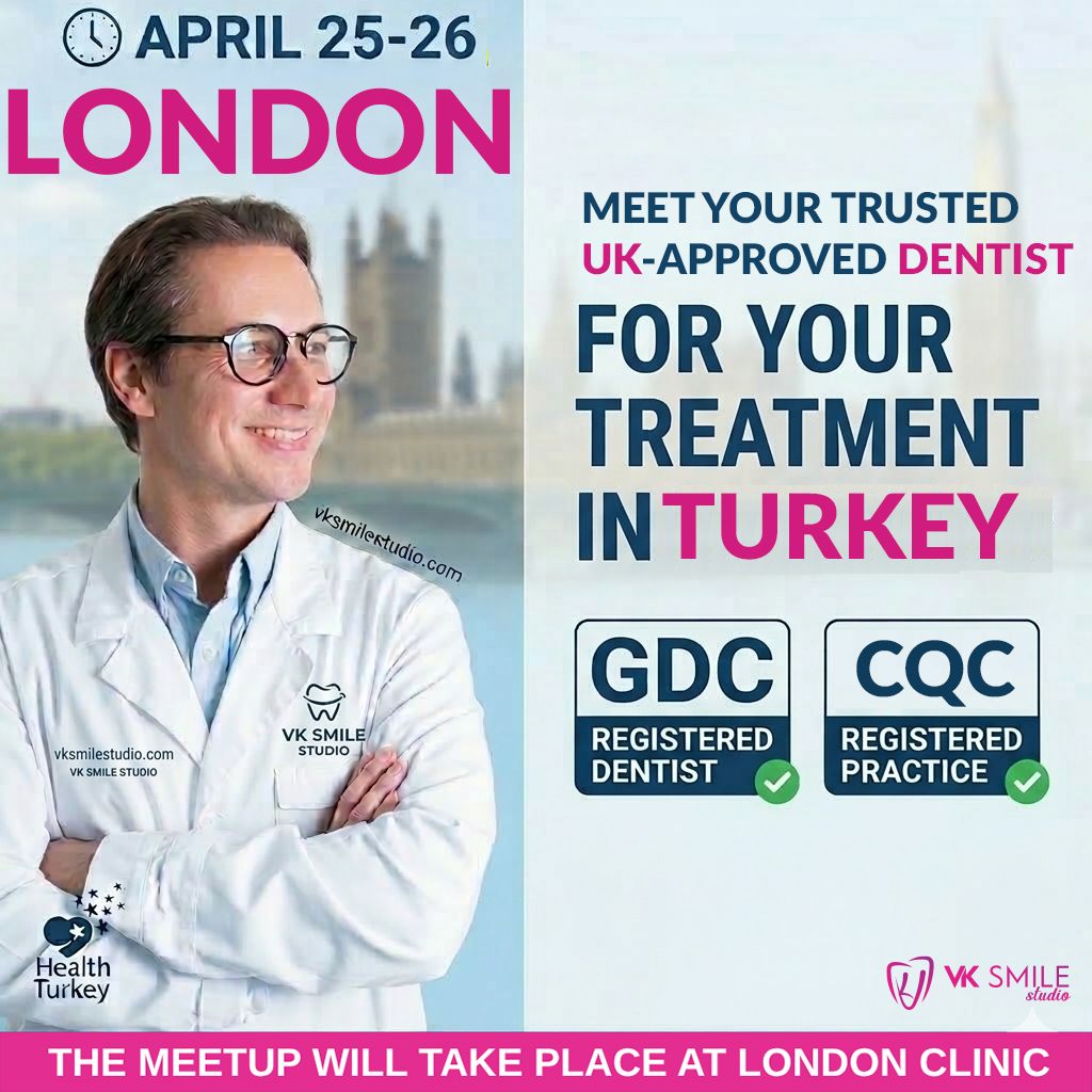 Every Tuesday, Thursday and Saturday, VK Smile Studio offers free consultations in Manchester. Our specialists create personalized treatment plans and refer patients for treatment in Turkey.